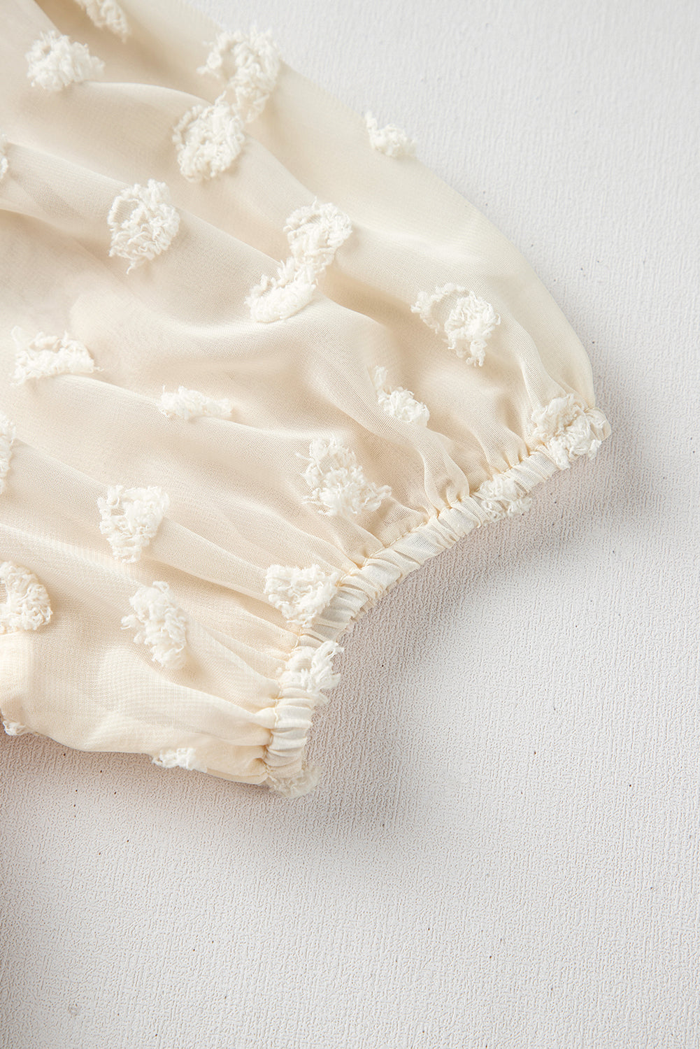 Apricot Polka Dot Mesh Puff Sleeve Textured Blouse