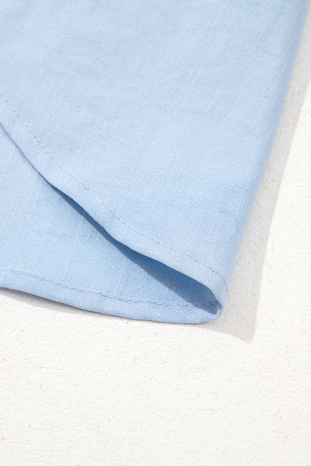 Beau Blue Floral Embroidered Puff Sleeve Split Neck Blouse