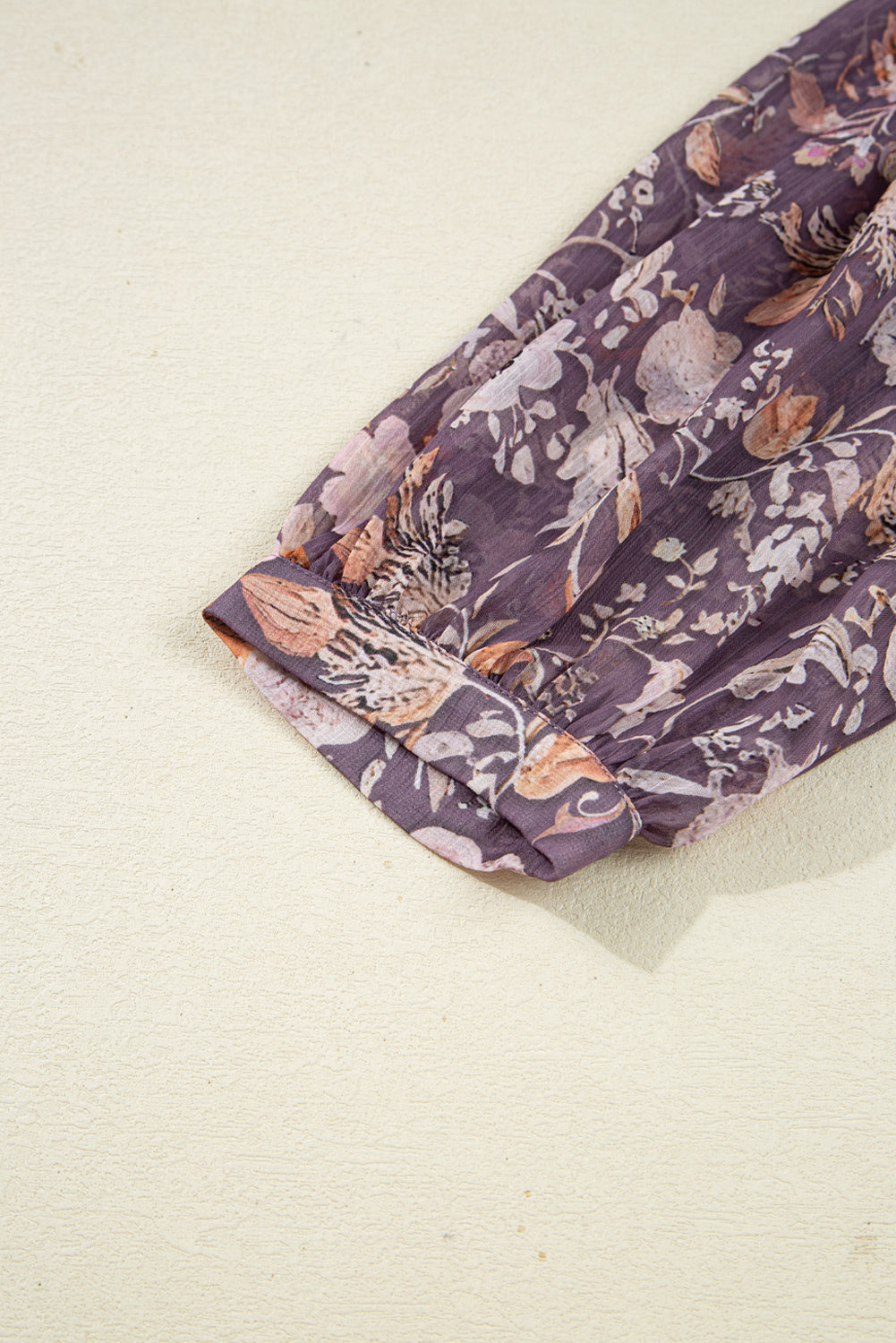 Blue Boho Flower Print 3/4 Sleeve Babydoll Blouse