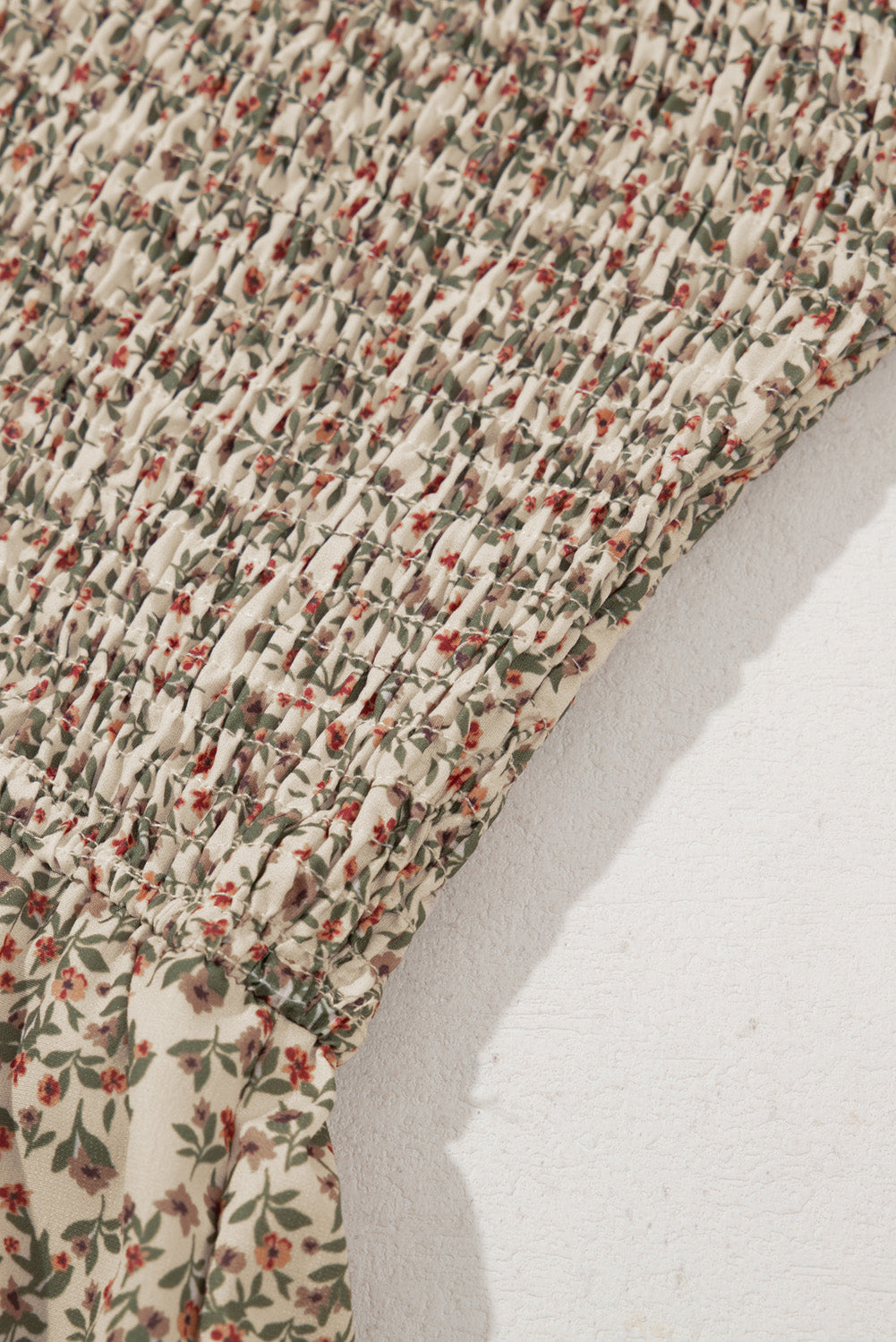 Floral Print Puff Sleeve Smocked Top