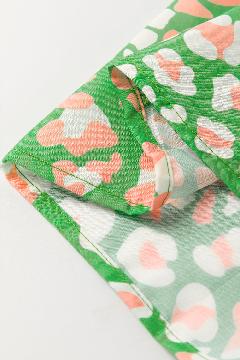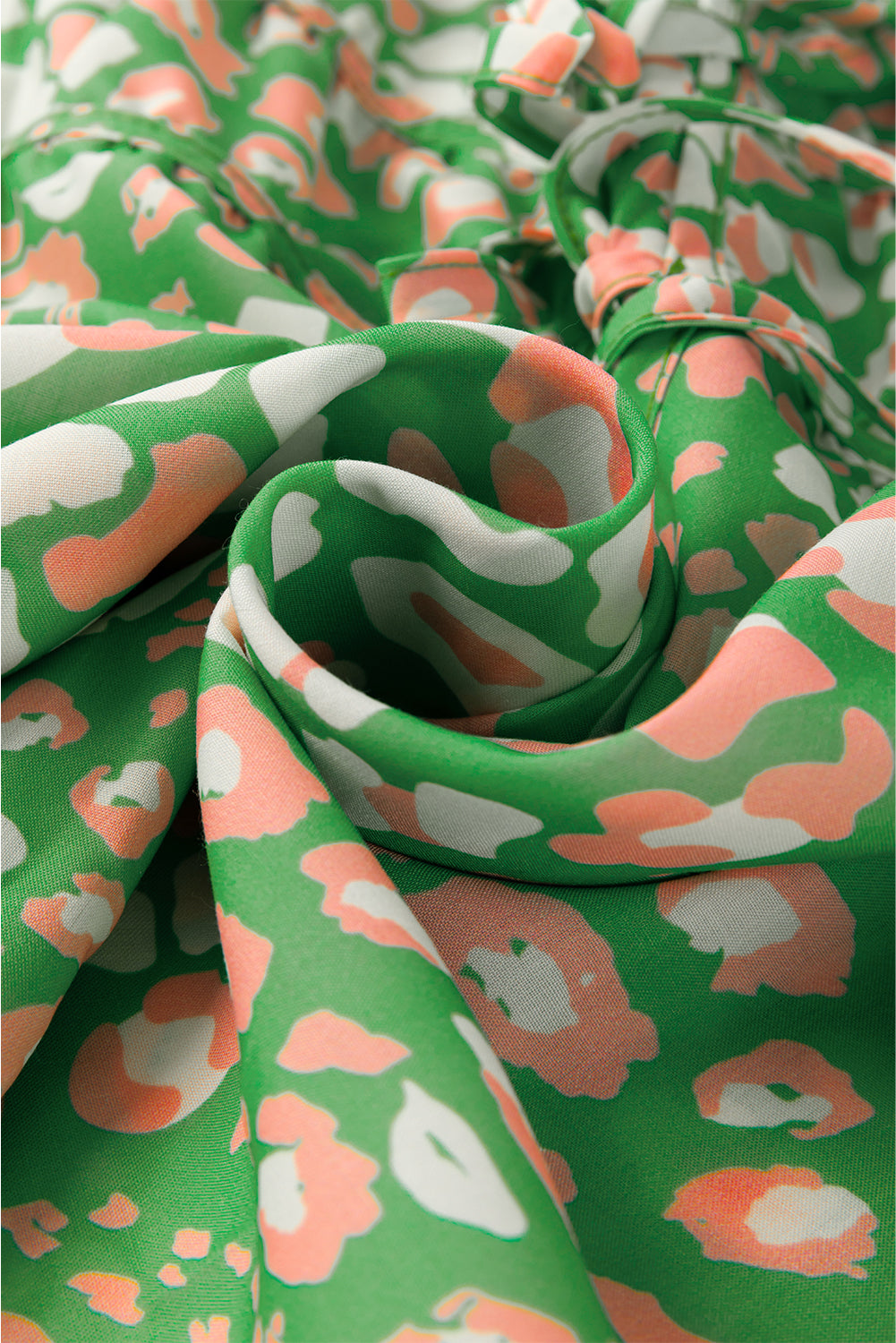 Green Abstract Leopard Tied Front Flutter Sleeve Blouse