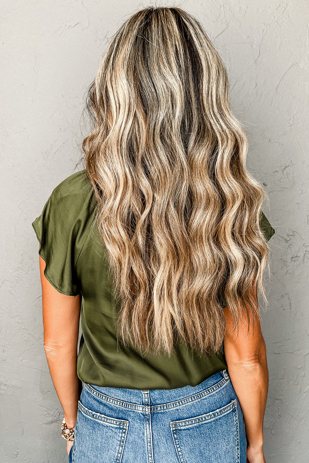 Jungle Green Pleated Flutter Sleeve Satin Top