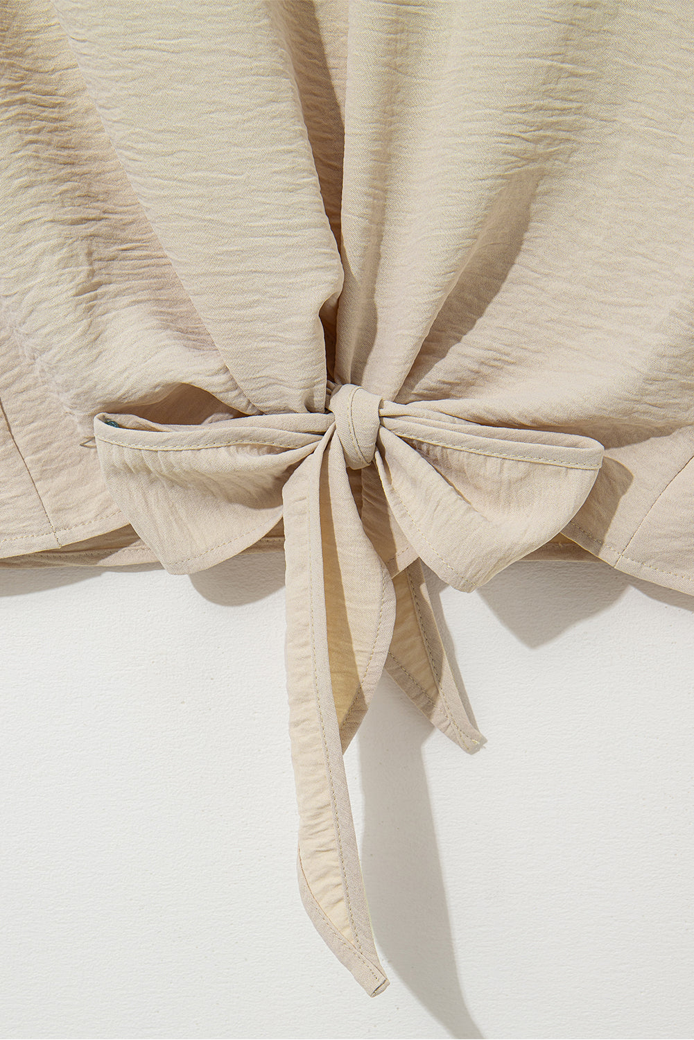 Parchment Solid Color Knotted Hem Short Sleeve Blouse