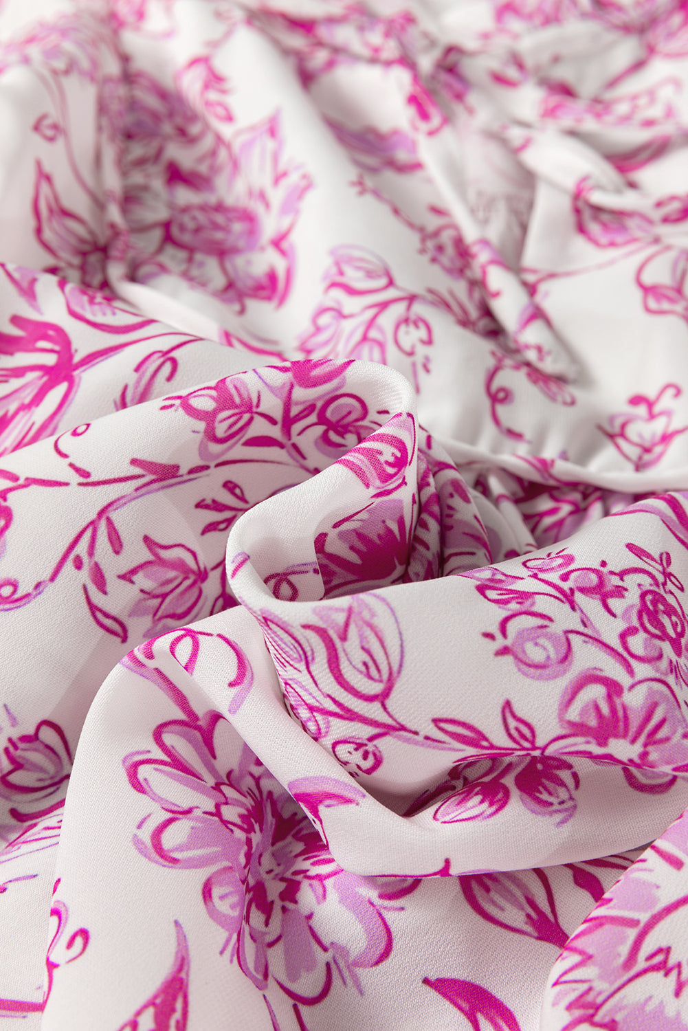 Pink Baroque Floral Ruffle Sleeve V Neck Blouse Top